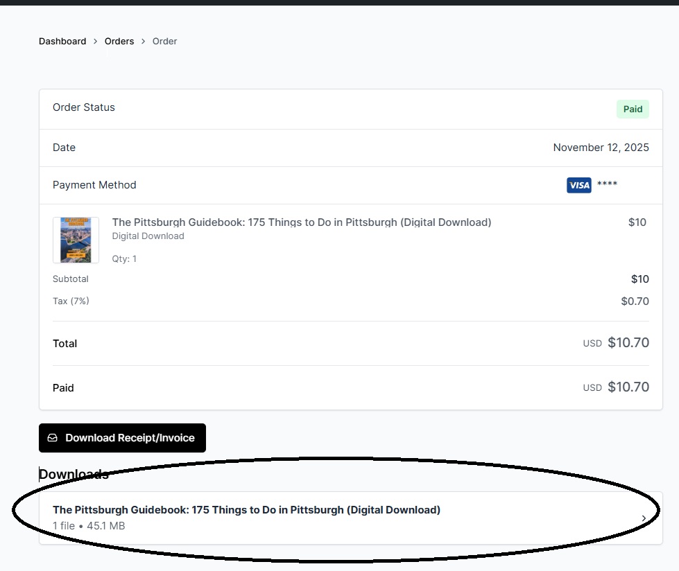 Currently, we are offering The Pittsburgh Guidebook: 175 Things to Do in Pittsburgh in print and digital download (PDF instant download).